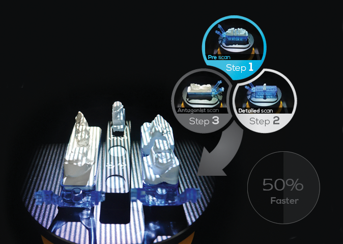 Gli scanner convenzionali richiedono il montaggio del modello con fissaggi o serraggi; il loro impiego è laborioso e poco ordinato e richiede tempo.